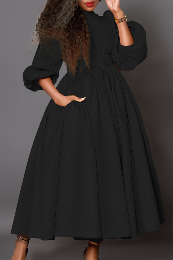 Half High Neck Long Sleeved Swing Dress