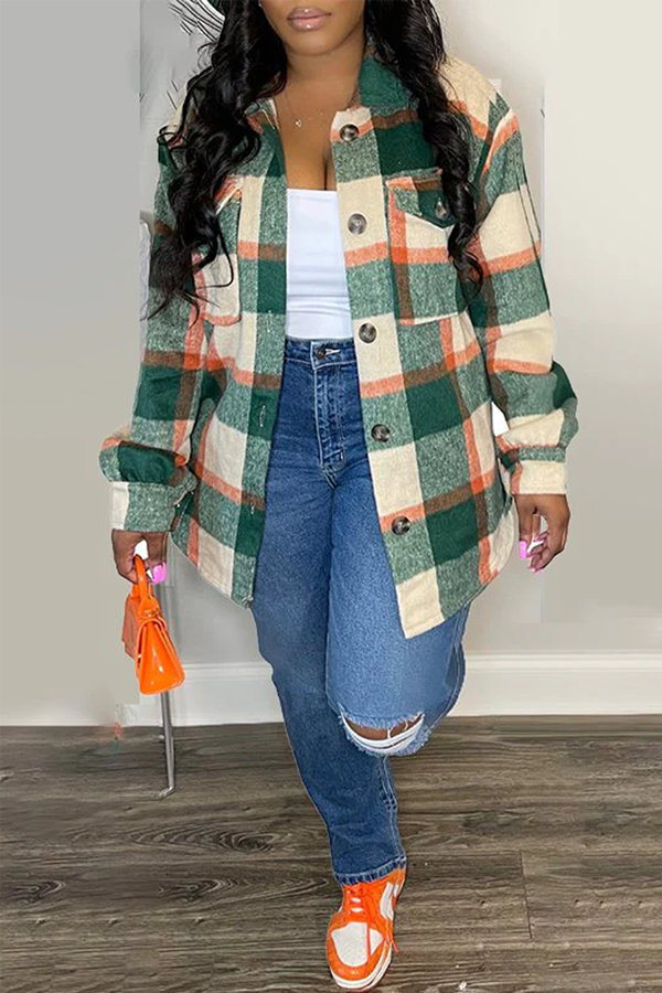 Plus Size Fashion Long Sleeve Plaid Shirt Coat