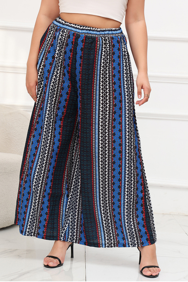 Plus Size Bohemian Striped Elastic Waist Wide Leg Pants