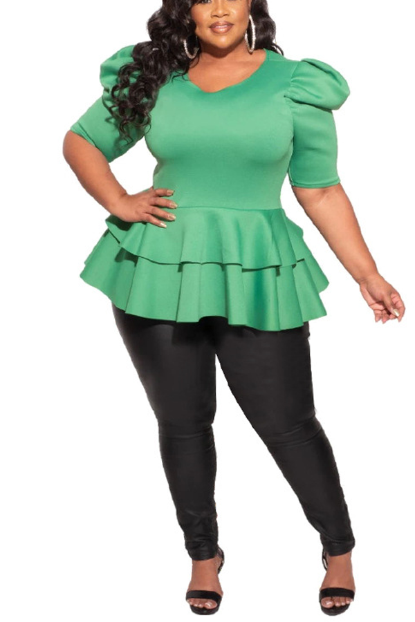 • Plus Size,Lantern Short Sleeve,High Low Asymmetrical