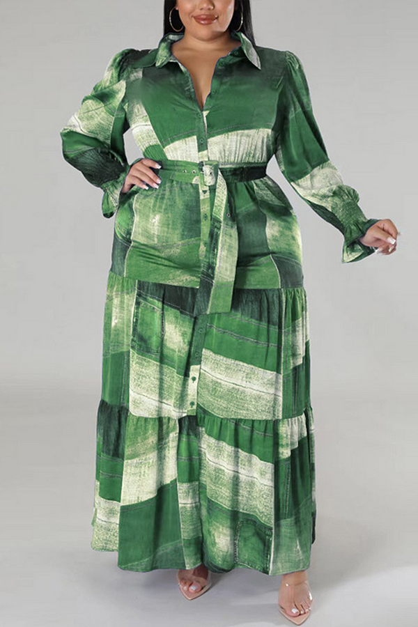 Plus Size Long Sleeve Printed Shirt Dress