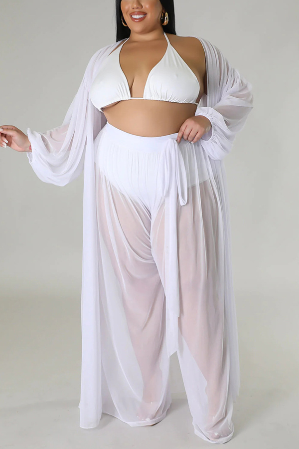Plus Size See-Through Sheer Duster and Pants Beach Set