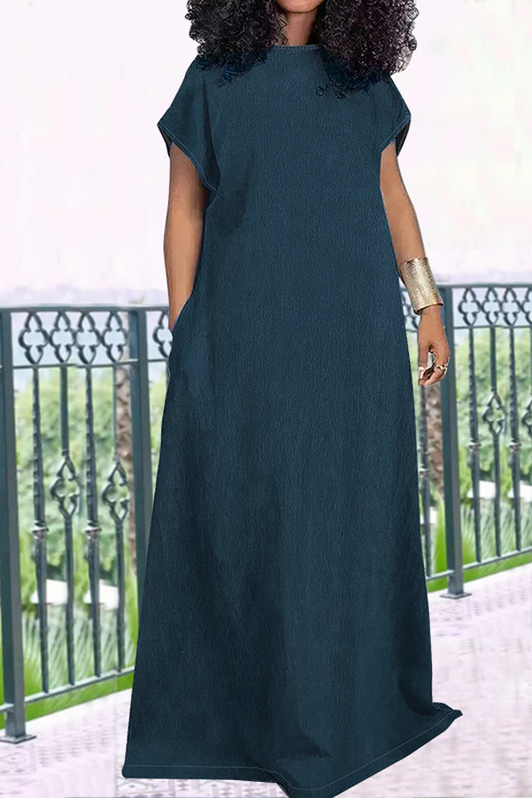 Plus Size Solid Color Denim Round Neck Open Back Maxi Dress